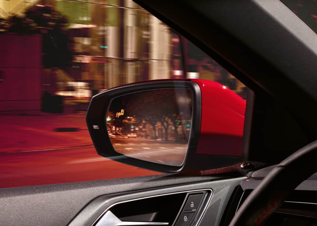 Hệ thống sẽ cảnh báo sự nguy hiểm khi chuyển làn đường, biểu tượng cảnh báo sẽ xuất hiện trên gương chiếu hậu nếu có phương tiện xuất hiện trong khu vực điểm mù của xe.