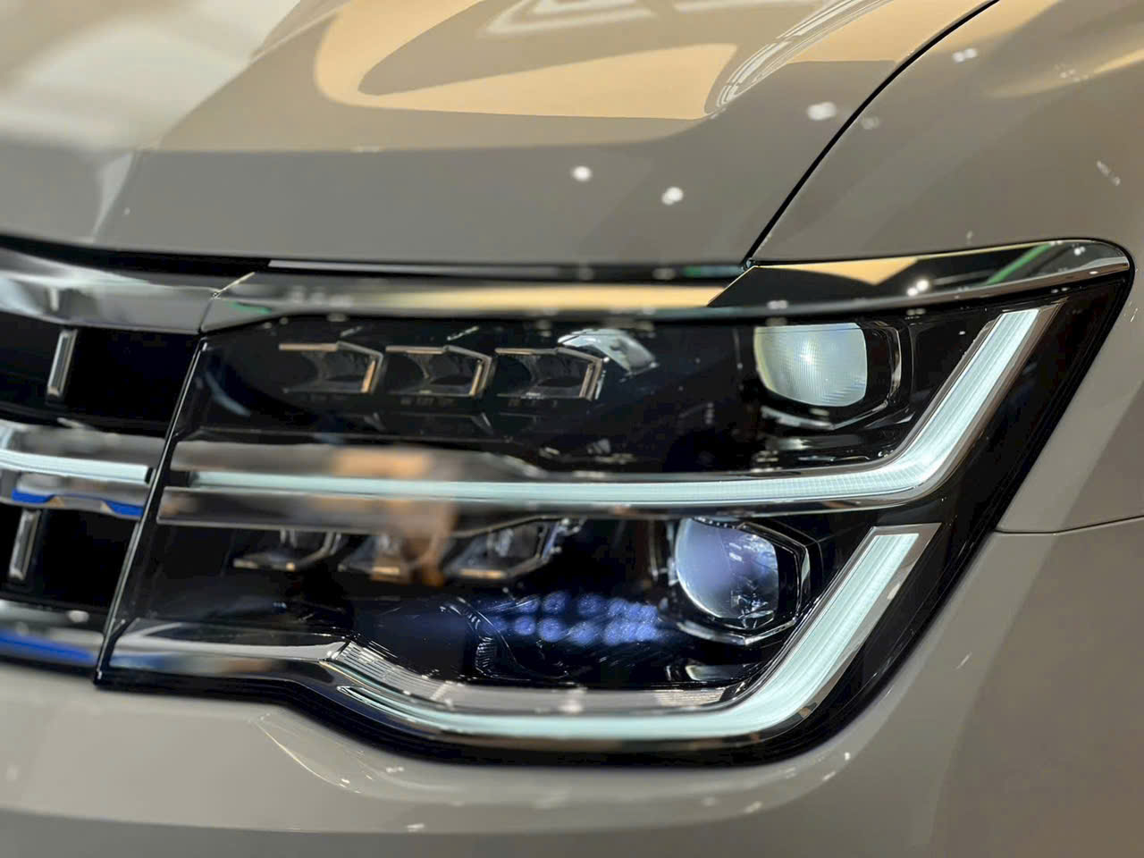 Teramont President gây ấn tượng ngay từ cái nhìn đầu tiên với kích thước lớn hàng đầu phân khúc SUV 7 chỗ. Phần đầu xe nổi bật với: